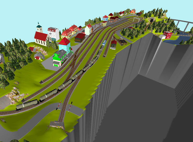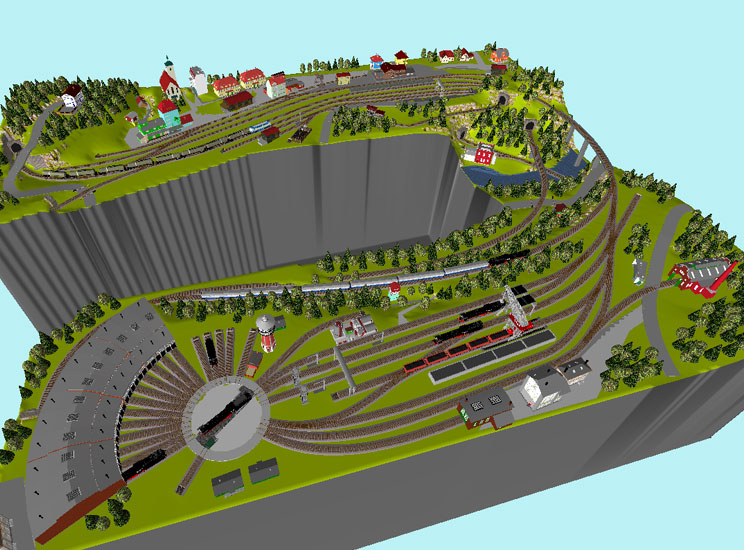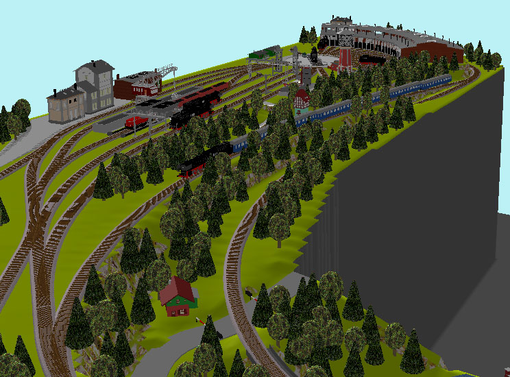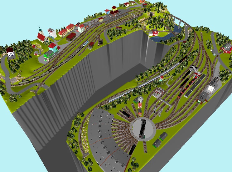 So Gleispläne sind ja was schönes, aber manchmal sagt einem eine dreidimensionale Darstellung mehr. Daher hier ein paar mit WinTrack erstellte Ansichten: