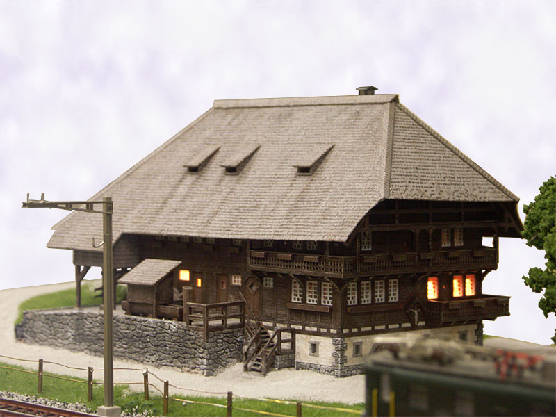 Eine weitere Finesse ist die Beleuchtung des Bauernhauses. Eine elektronische Schaltung (von Conrad) simuliert die Bewohner und lässt programmgesteuert in einzelnen Räumen das Licht an- und wieder ausgehen.