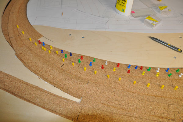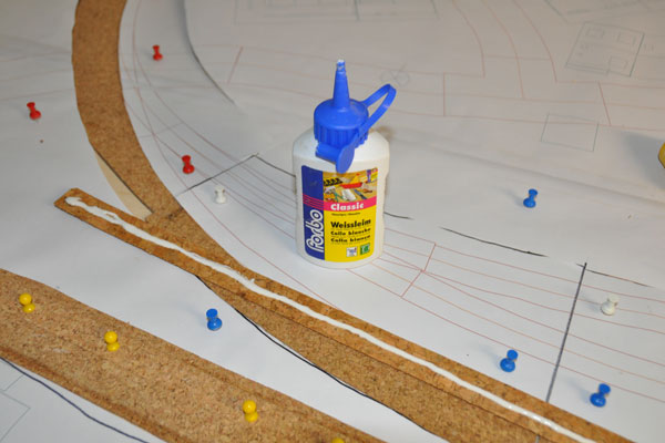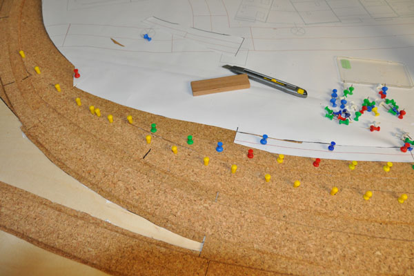 Achtung: Liegen Weichen im bearbeiteten Bereich, darf nicht vergessen werden, die Lage mit Filzstift auf dem Kork zu markieren.