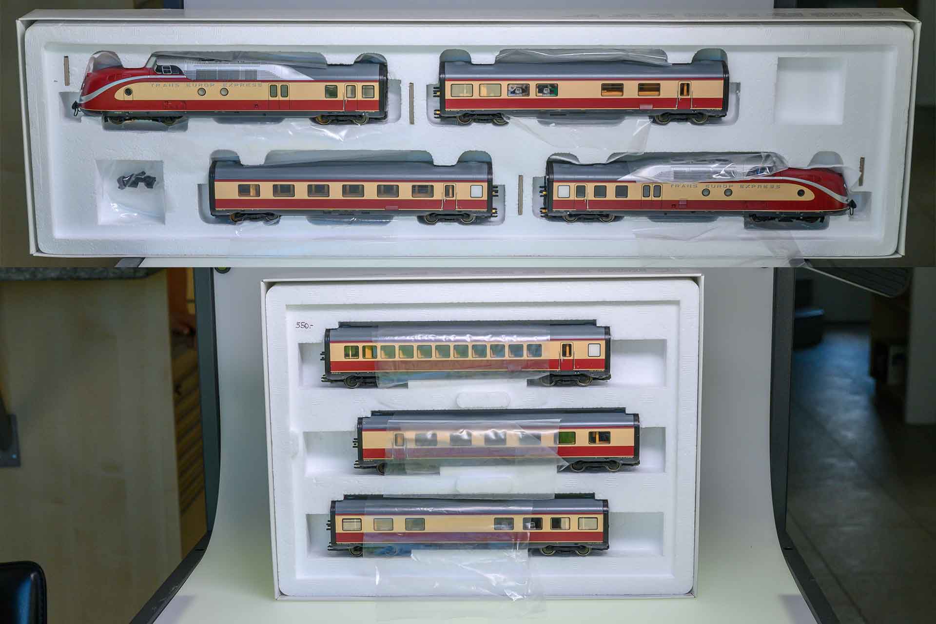 - Ursprungsausführung mit 5 Zwischenwagen für den Trans-Europ-Express (TEE),
