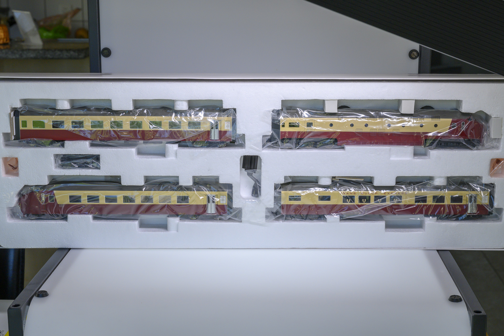 - Dieselelektrischer Triebkopf, Abteilwagen, Speisewagen und Großraumwagen mit Führerstand.